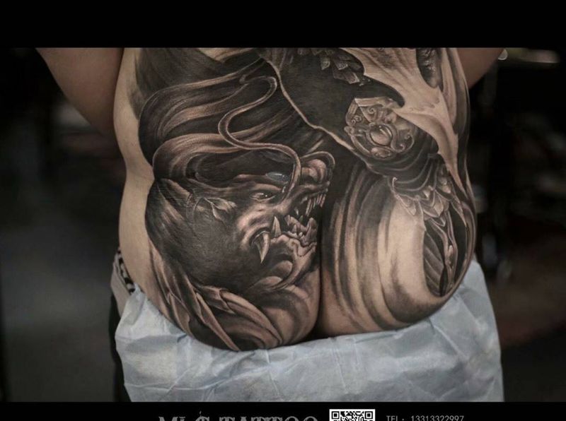 黑灰满背纹身图案