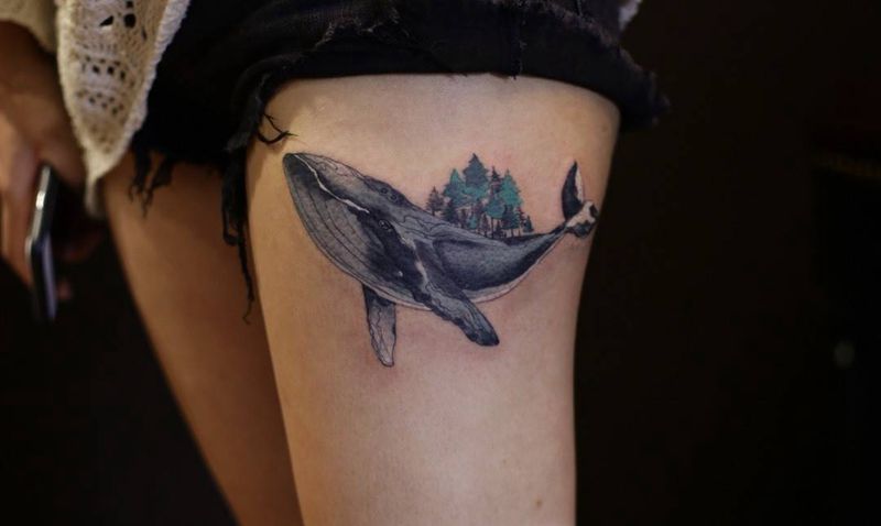 • T网红王老大花腿龙纹身图片_腿部新传统纹身图案