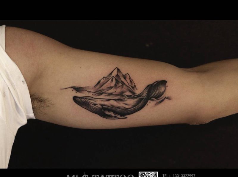 当前位置: 首页 >河北省保定市纹身店-魔罗阁刺青潮店纹身图案>大臂作品山与鲸纹身图片