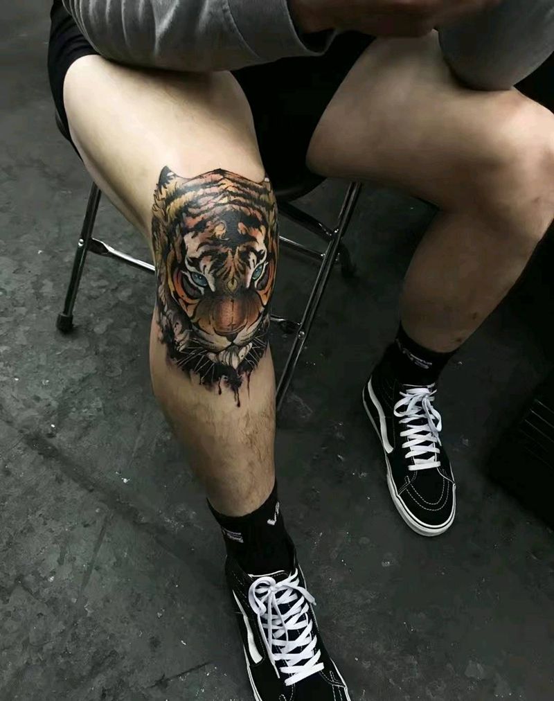 • T网红王老大花腿龙纹身图片_腿部新传统纹身图案