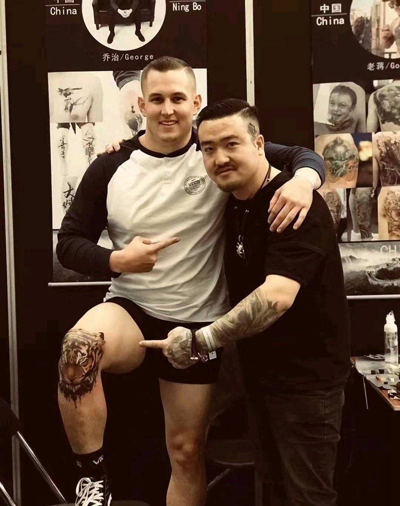 • T网红王老大花腿龙纹身图片_腿部新传统纹身图案