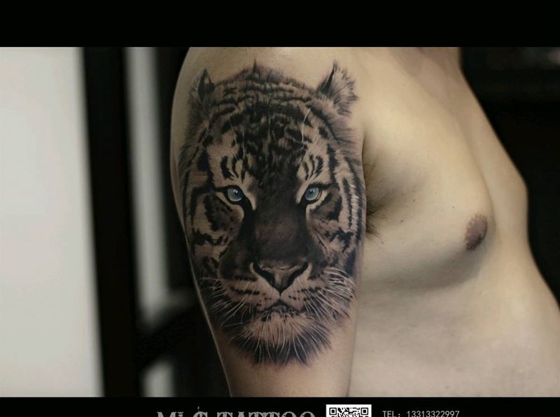 当前位置: 首页 >河北省保定市纹身店-魔罗阁刺青潮店纹身图案>写实老虎纹身图片