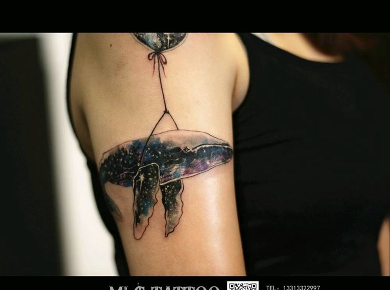 鲸与气球纹身图片