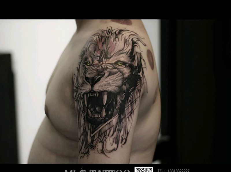 当前位置: 首页 >河北省保定市纹身店-魔罗阁刺青潮店纹身图案>写实狮子纹身图片