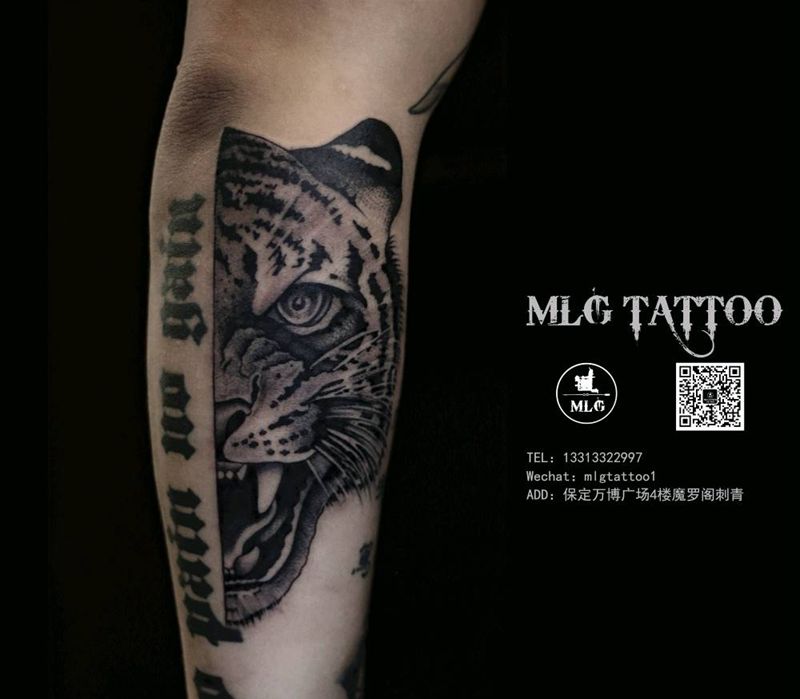 当前位置: 首页 >河北省保定市纹身店-魔罗阁刺青潮店纹身图案>半面老虎纹身图片