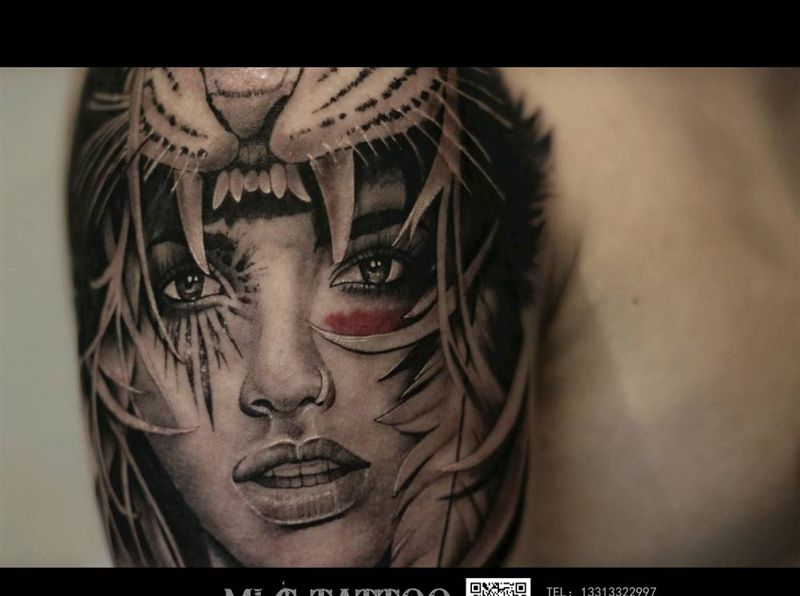 • 纹身吧推荐的披肩图腾半胛纹身图案作品展示