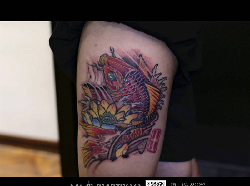 当前位置: 首页 >河北省保定市纹身店-魔罗阁刺青潮店纹身图案>鲤鱼纹身图片_腿部老传统纹身图案