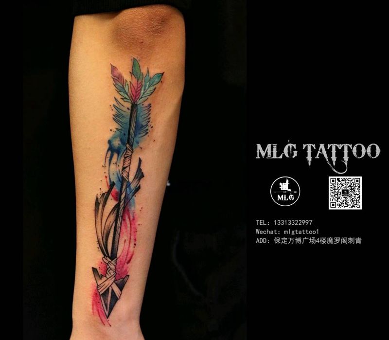 当前位置: 首页 >河北省保定市纹身店-魔罗阁刺青潮店纹身图案>弓箭纹身图片_手臂水彩纹身图案