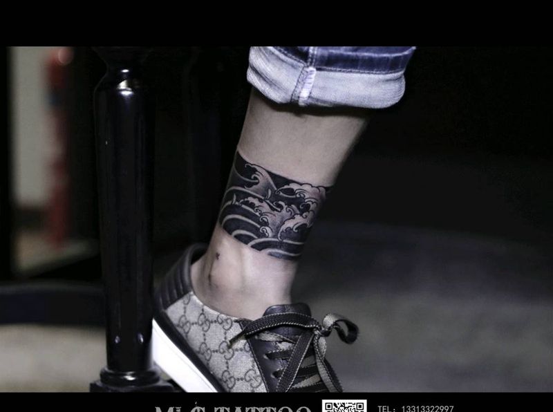 情侣传统腿环纹身图片_腿部老传统纹身图案