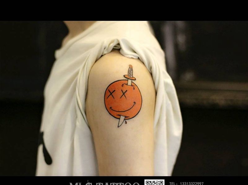 当前位置: 首页 >河北省保定市纹身店-魔罗阁刺青潮店纹身图案>橙子纹身图片_手臂Old School纹身图案