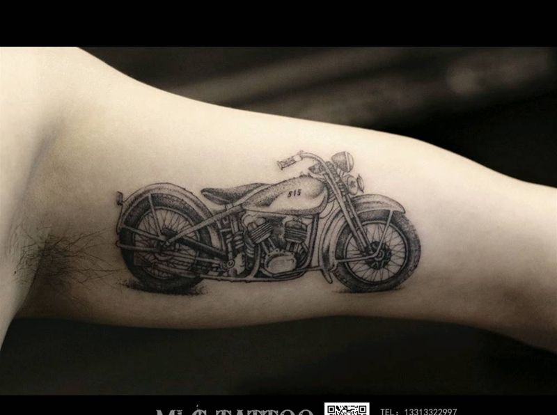 摩托车纹身图片_手臂点刺纹身图案