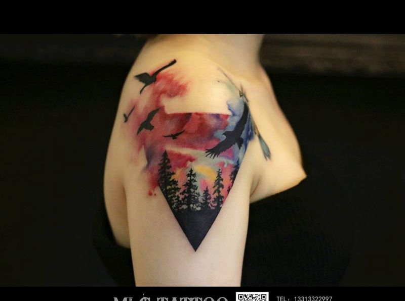 当前位置: 首页 >河北省保定市纹身店-魔罗阁刺青潮店纹身图案>晕染纹身图片_手臂水彩纹身图案