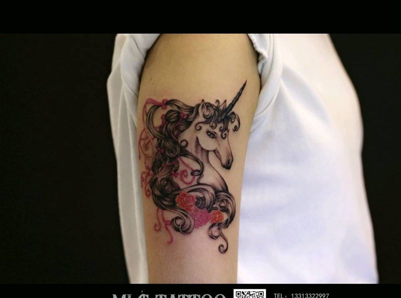 当前位置: 首页 >河北省保定市纹身店-魔罗阁刺青潮店纹身图案>独角兽纹身图片_手臂New School纹身图案