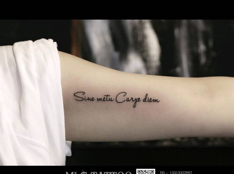 当前位置: 首页 >河北省保定市纹身店-魔罗阁刺青潮店纹身图案>英文纹身图片_手臂腰部花体字纹身图案