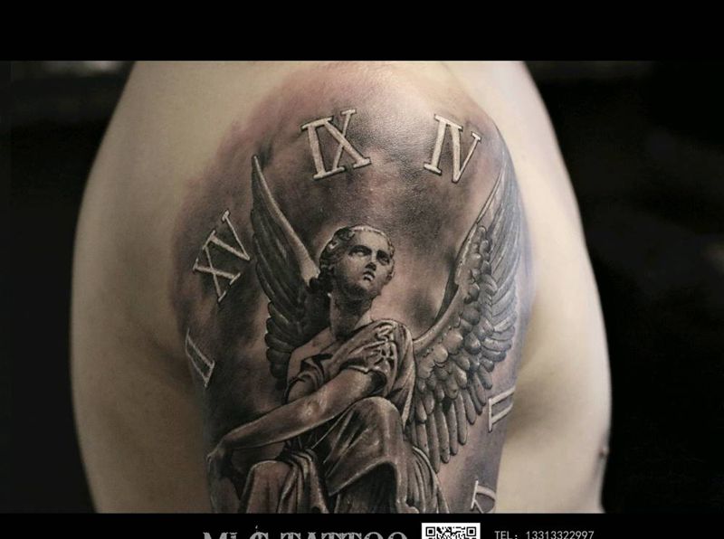 当前位置: 首页 >河北省保定市纹身店-魔罗阁刺青潮店纹身图案>天使纹身图片_手臂欧美写实纹身图案