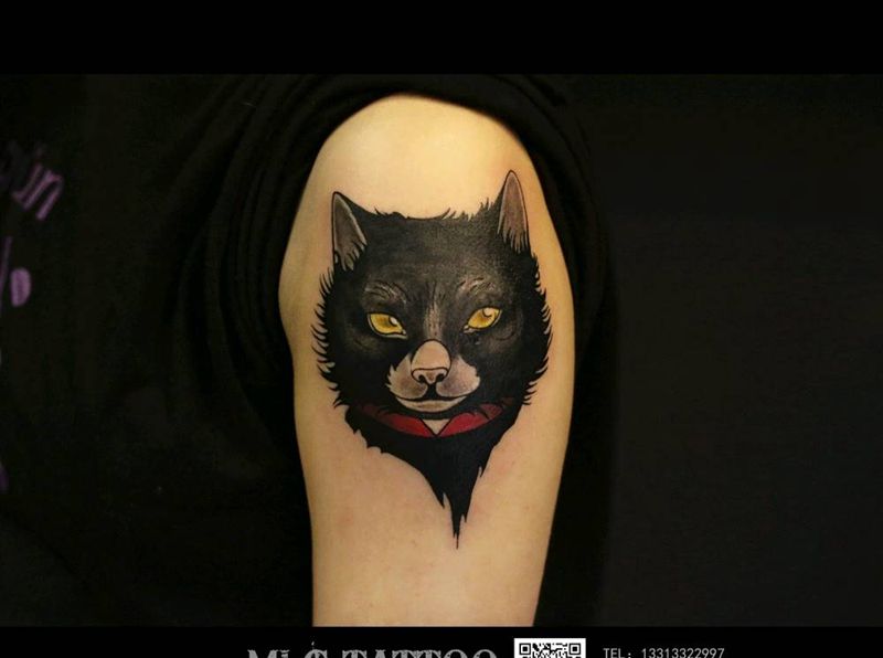 当前位置: 首页 >河北省保定市纹身店-魔罗阁刺青潮店纹身图案>暗黑猫咪纹身图片_手臂New School纹身图案