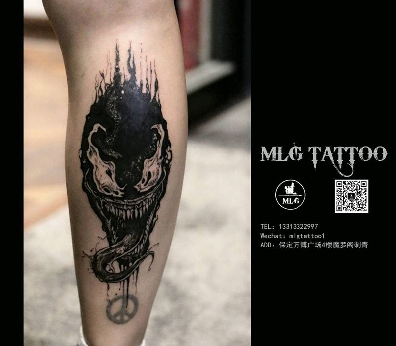 当前位置: 首页 >河北省保定市纹身店-魔罗阁刺青潮店纹身图案>毒液纹身图片_腿部图腾纹身图案