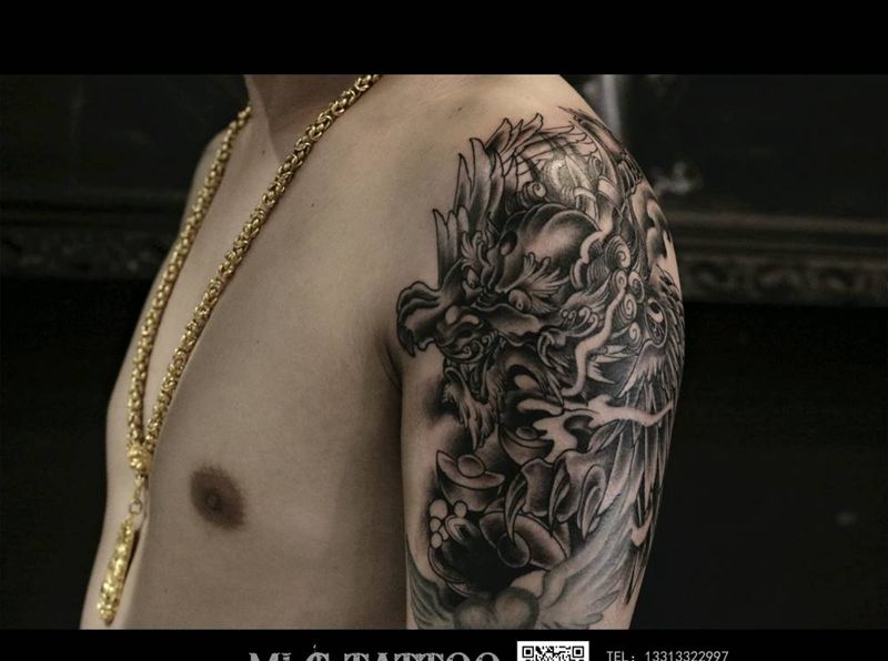 • 纹身吧推荐的披肩图腾半胛纹身图案作品展示