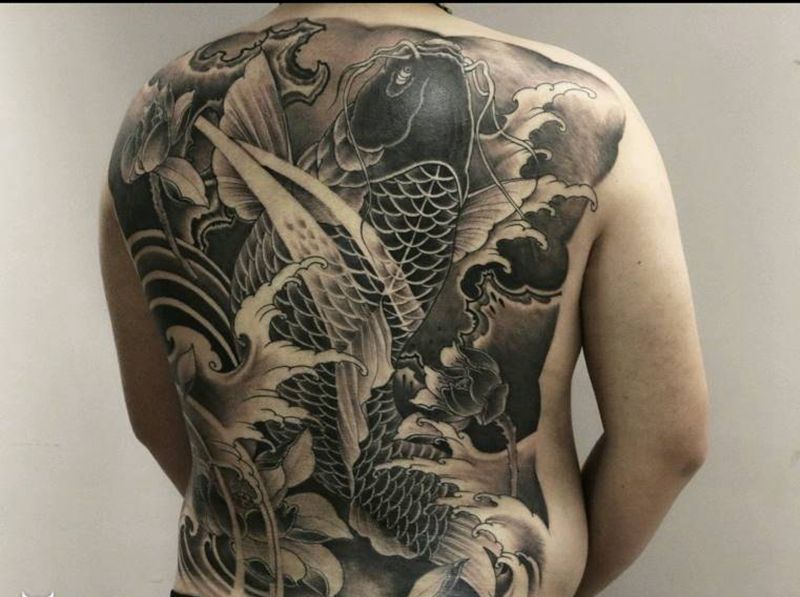 黑灰满背纹身图案