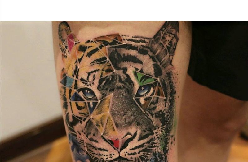 当前位置: 首页 >河北省保定市纹身店-魔罗阁刺青潮店纹身图案>多元素 虎头纹身图片_腿部欧美写实New School纹身图案