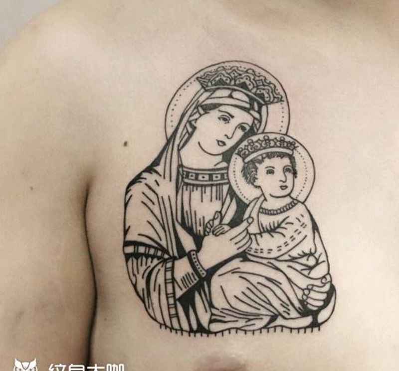当前位置: 首页 >河北省保定市纹身店-魔罗阁刺青潮店纹身图案>圣母纹身图片_胸部图腾纹身图案