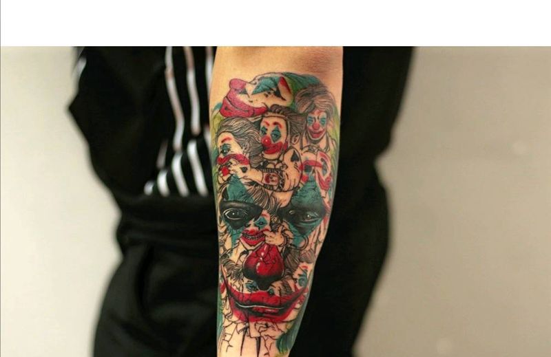 当前位置: 首页 >河北省保定市纹身店-魔罗阁刺青潮店纹身图案>数一下多少个小丑纹身图片_手臂Old SchoolNew School纹身图案