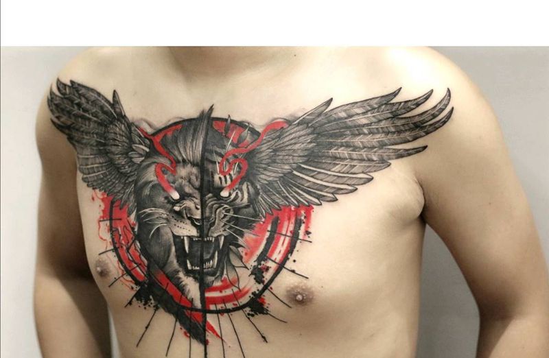 • 男性大花胸_42张优秀的男性大花胸纹身图案图片