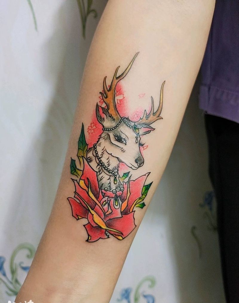 当前位置: 首页 >河北省保定市纹身店-安·刺青纹身图案>鹿纹身图片_手臂纹身图案