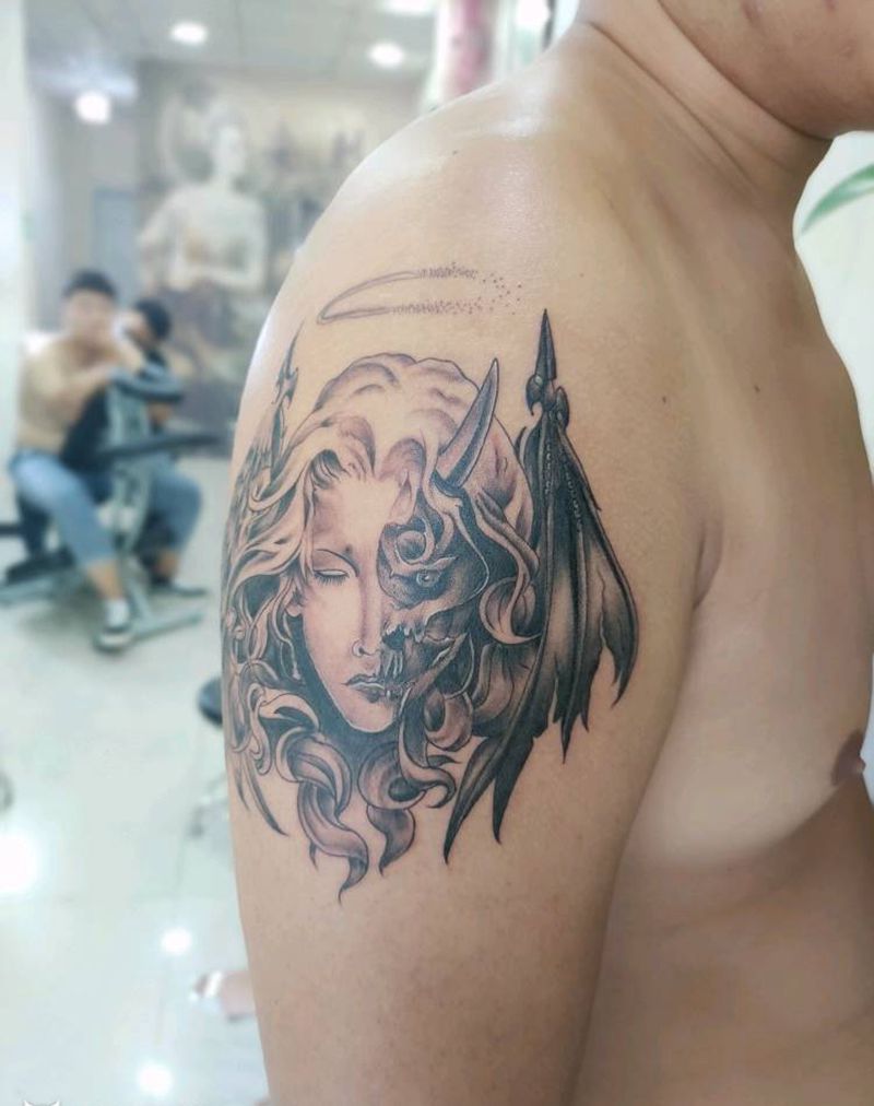当前位置: 首页 >河北省保定市纹身店-安·刺青纹身图案>天使与魔鬼纹身图片_手臂纹身图案