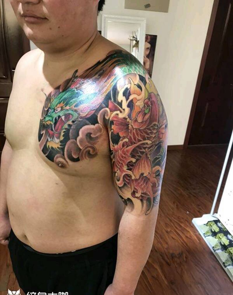 • T网红王老大花腿龙纹身图片_腿部新传统纹身图案