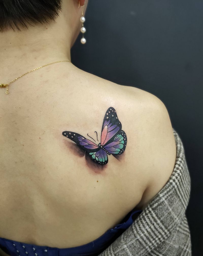 蝴蝶纹身图片_肩部纹身图案