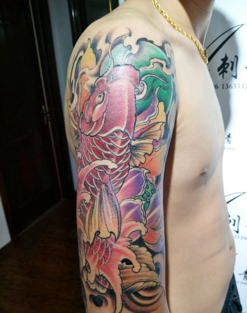 当前位置: 首页 >河北省保定市纹身店-安·刺青纹身图案>彩色锦鲤纹身图片
