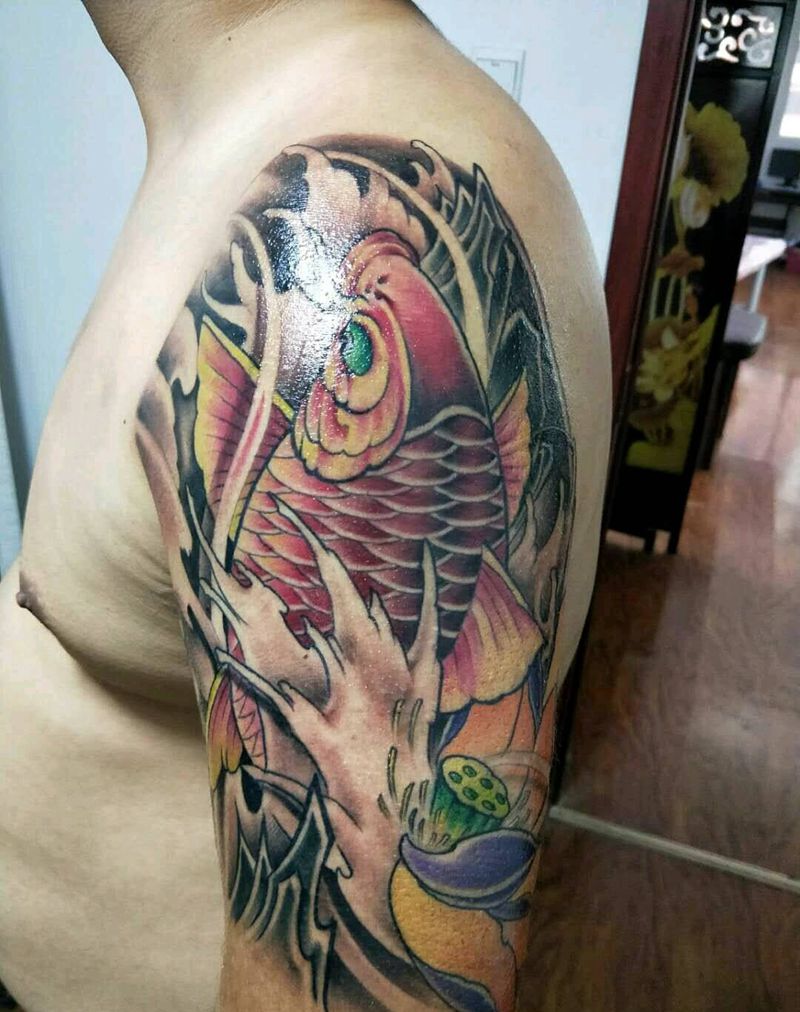当前位置: 首页 >河北省保定市纹身店-安·刺青纹身图案>大臂锦鲤纹身图片