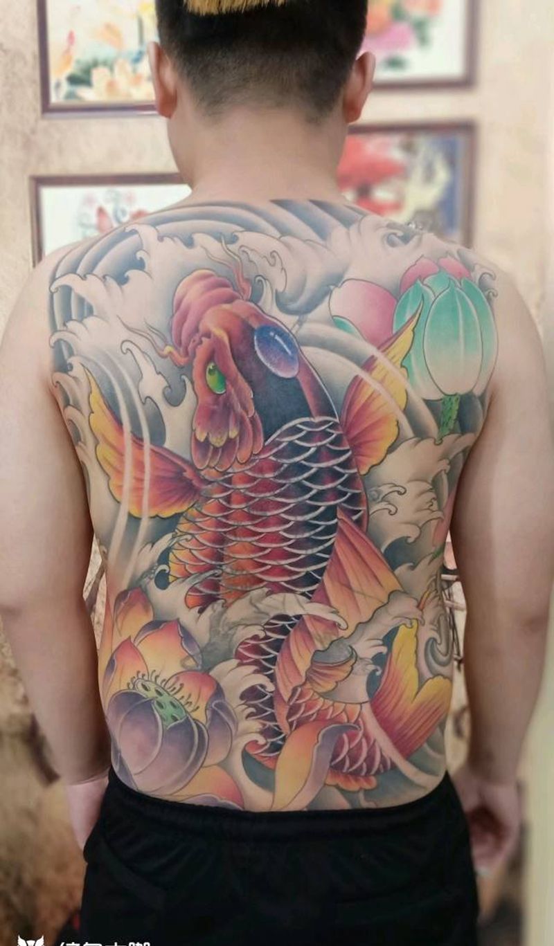 当前位置: 首页 >河北省保定市纹身店-安·刺青纹身图案>遮盖锦鲤纹身图片_背部纹身图案
