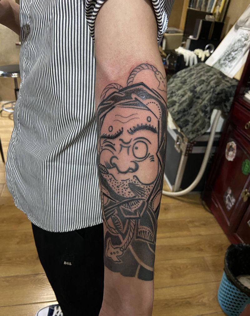 当前位置: 首页 >河北省邢台市纹身店-小黑刺青纹身专营店纹身图案>吹火男纹身图片_手臂老传统纹身图案