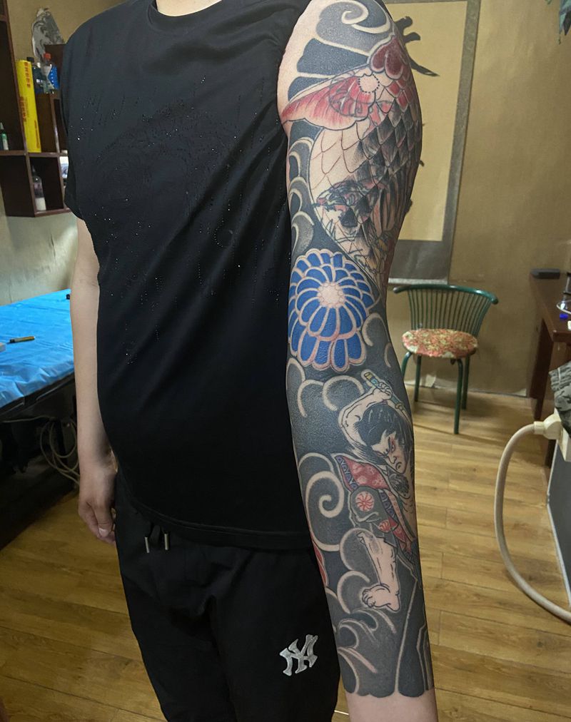 当前位置: 首页 >河北省邢台市纹身店-小黑刺青纹身专营店纹身图案>日式风格花臂纹身图片_手臂纹身图案