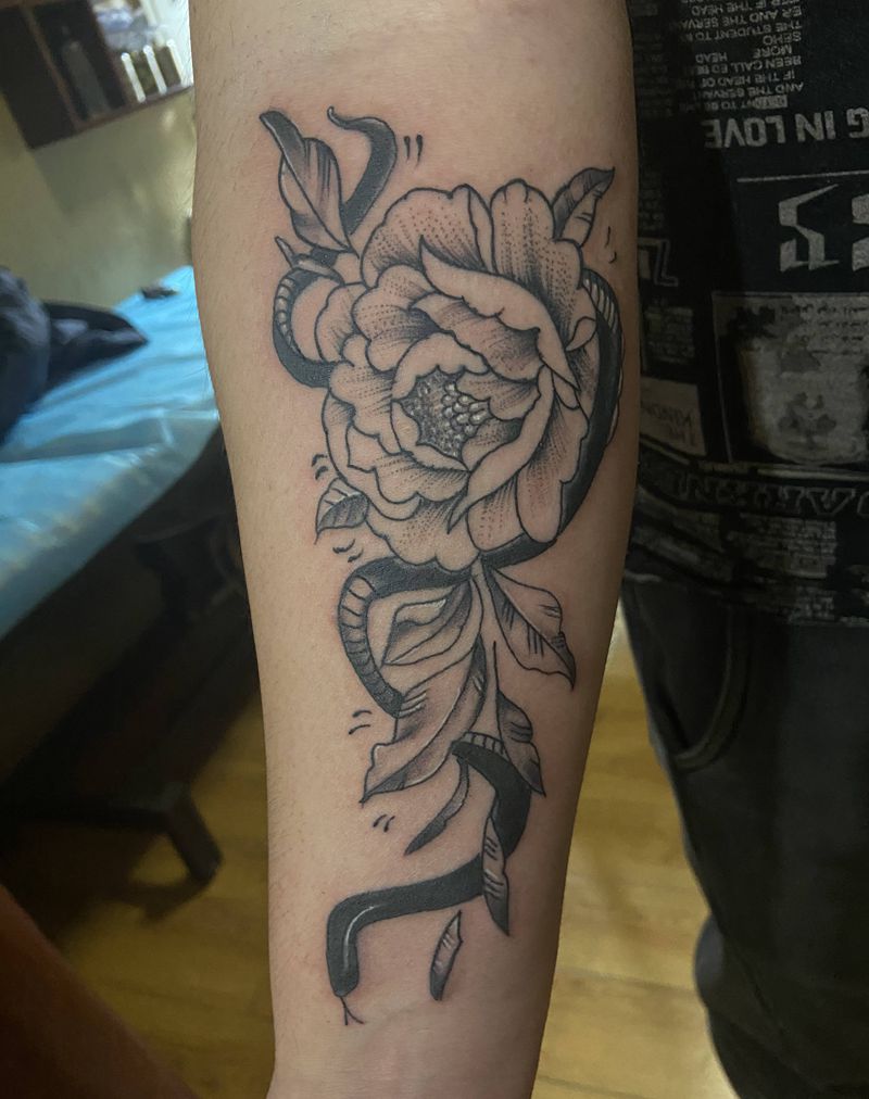 当前位置: 首页 >河北省邢台市纹身店-小黑刺青纹身专营店纹身图案>素花纹身图片_手臂纹身图案