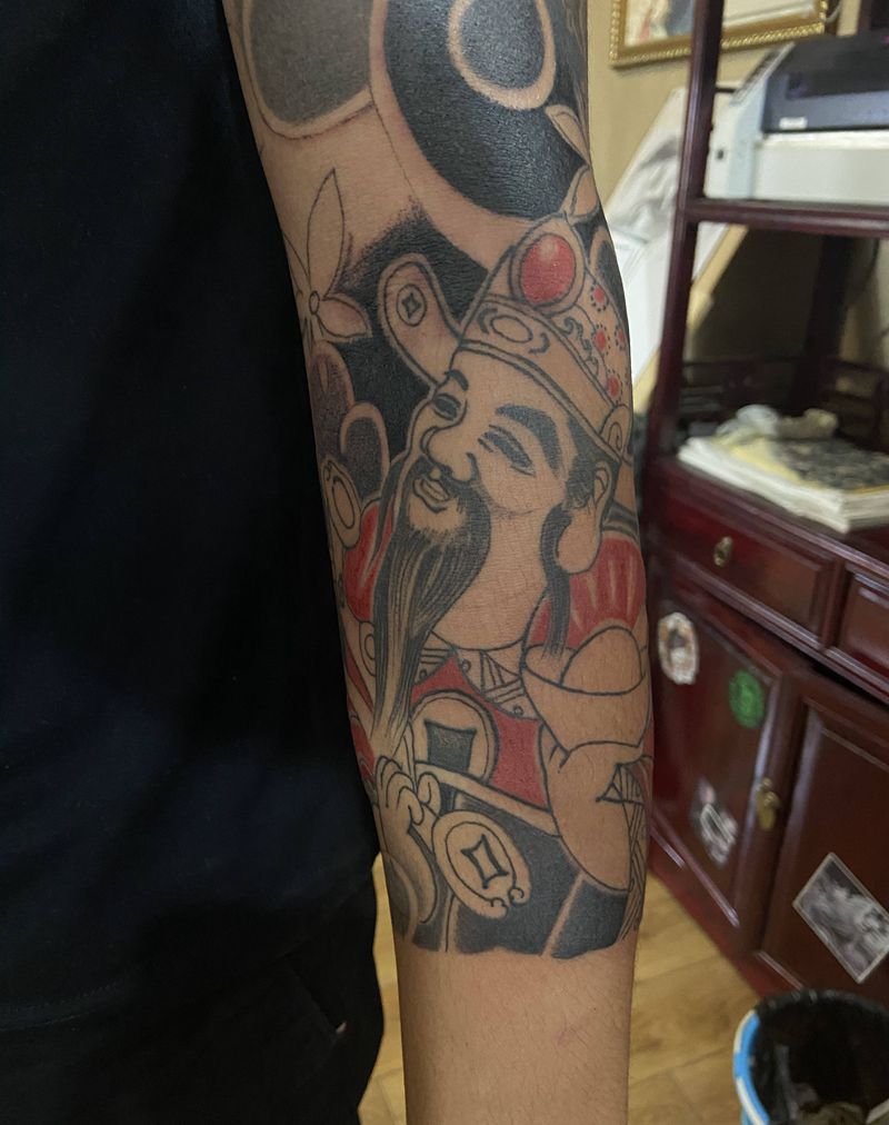 当前位置: 首页 >河北省邢台市纹身店-小黑刺青纹身专营店纹身图案>传统财神爷未完成纹身图片_手臂老传统纹身图案