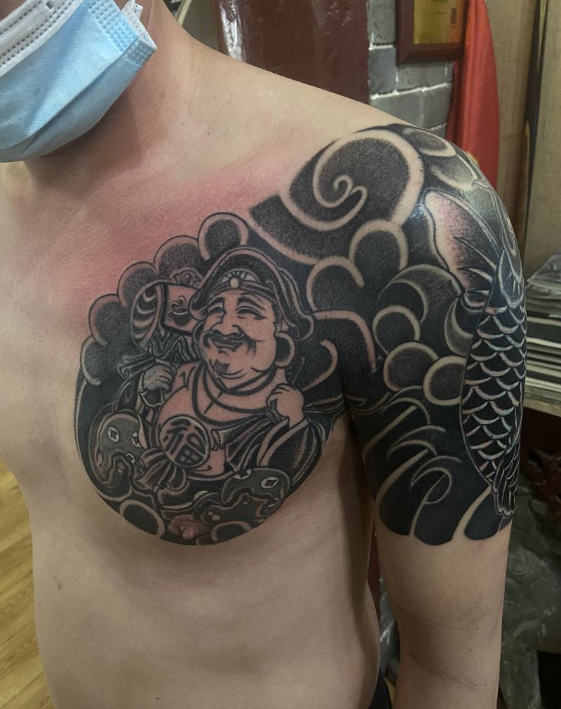 当前位置: 首页 >河北省邢台市纹身店-小黑刺青纹身专营店纹身图案>日式半胛纹身图片_胸部纹身图案