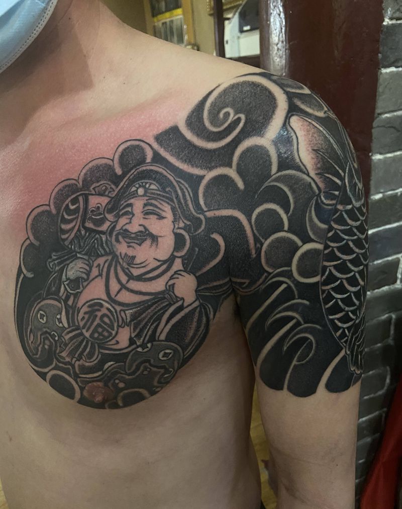 当前位置: 首页 >河北省邢台市纹身店-小黑刺青纹身专营店纹身图案>日式半胛纹身图片_胸部纹身图案