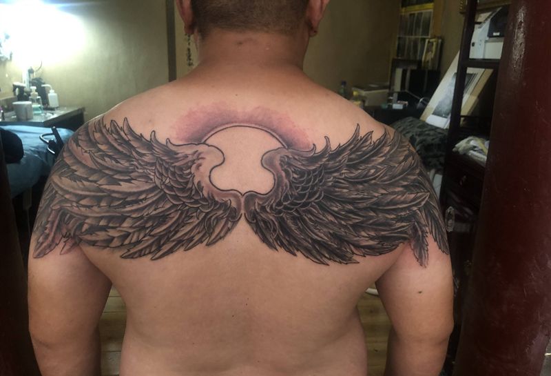 当前位置: 首页 >河北省邢台市纹身店-小黑刺青纹身专营店纹身图案>阴阳翅膀纹身图片_背部纹身图案