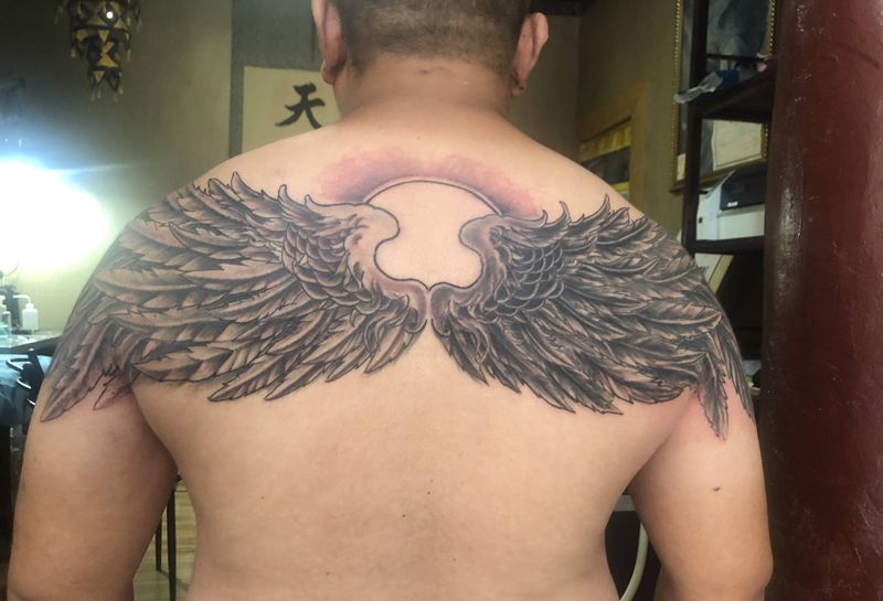 当前位置: 首页 >河北省邢台市纹身店-小黑刺青纹身专营店纹身图案>阴阳翅膀纹身图片_背部纹身图案