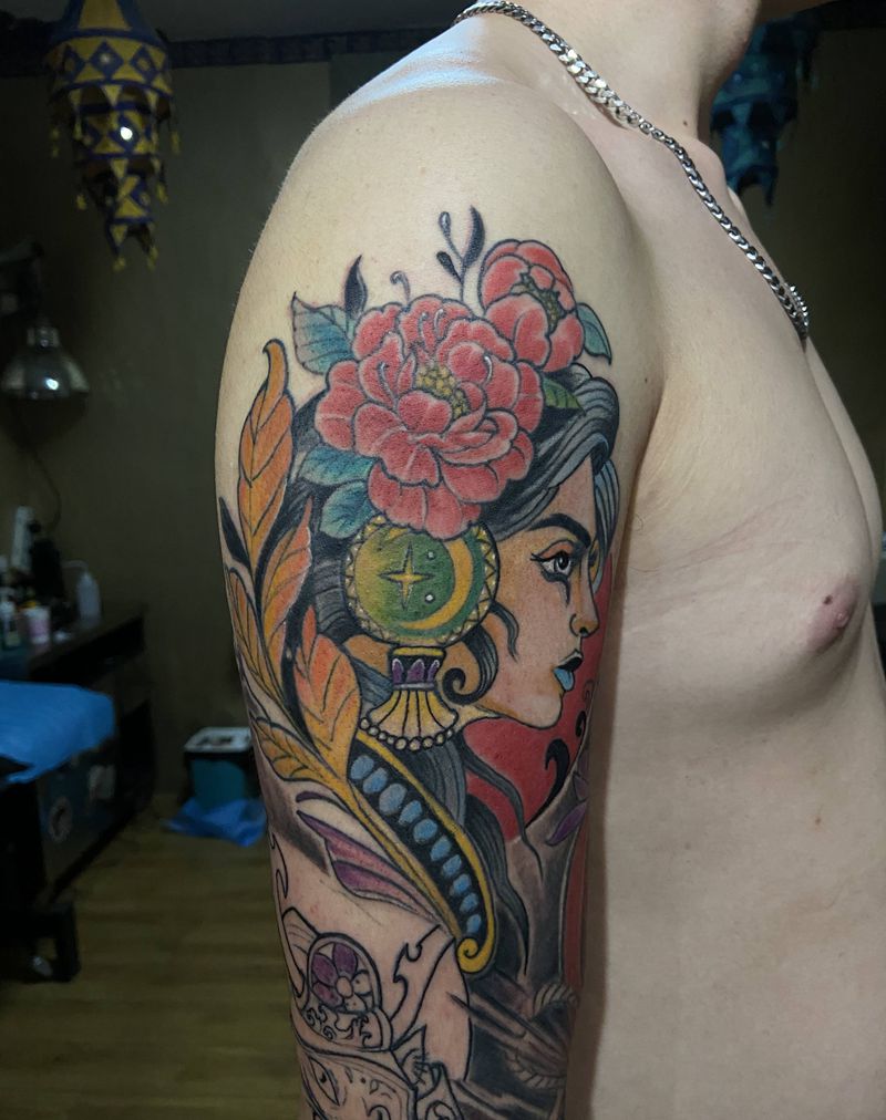 • 女性大花胸纹身_43张霸气漂亮的女性大花胸纹身图案作品