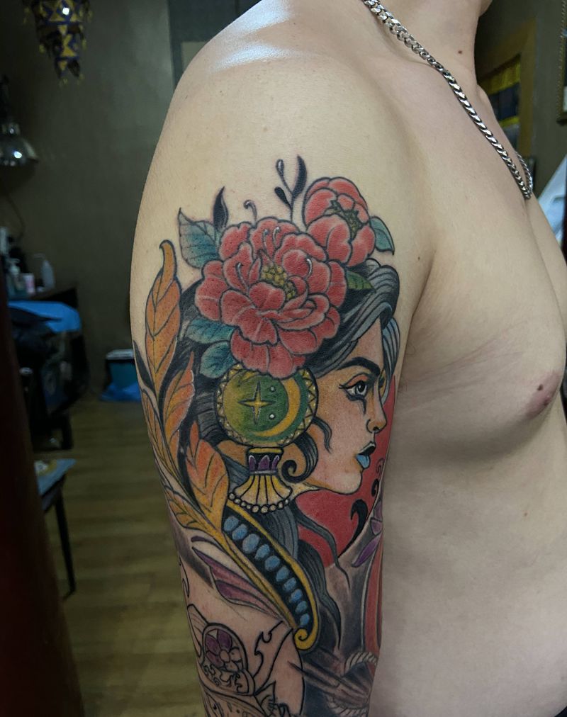 • 女性大花胸纹身_43张霸气漂亮的女性大花胸纹身图案作品