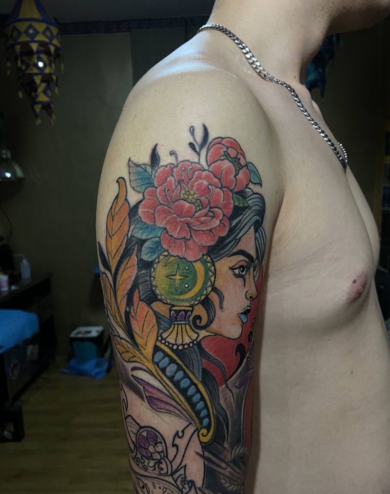 • 女性大花胸纹身_43张霸气漂亮的女性大花胸纹身图案作品