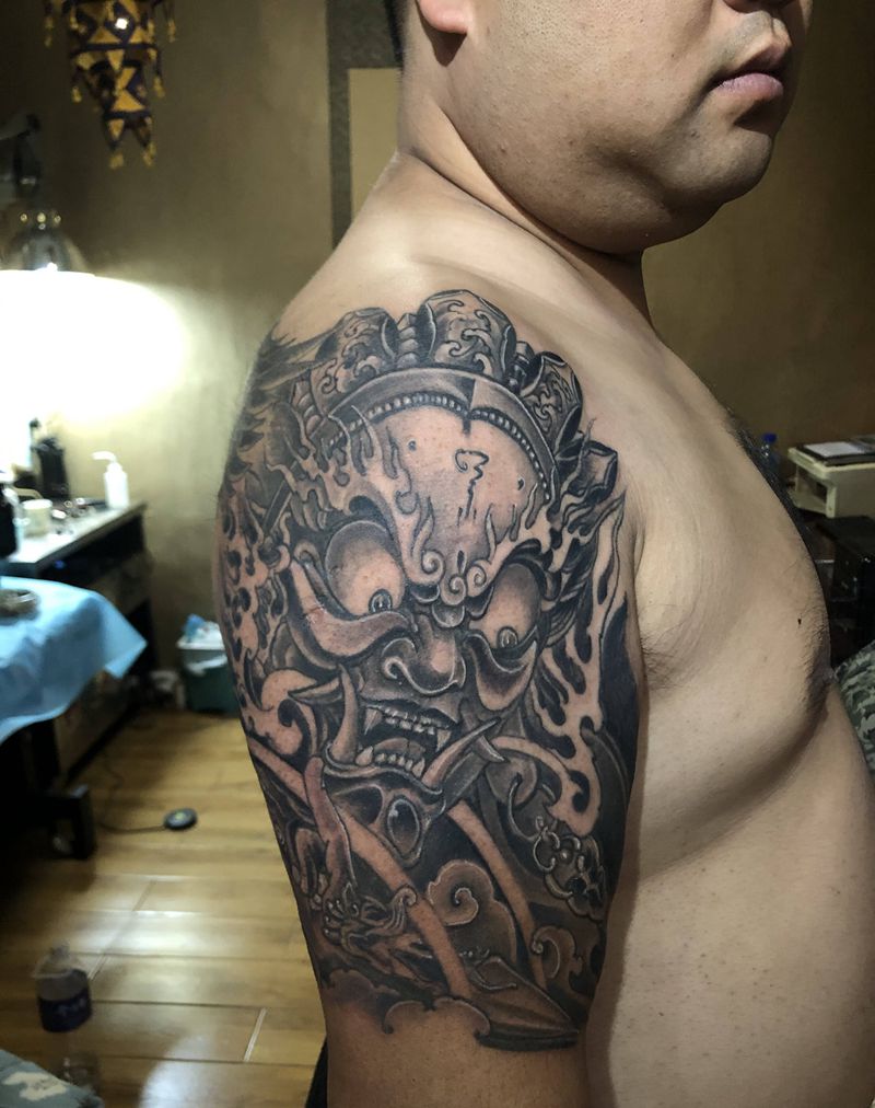 当前位置: 首页 >河北省邢台市纹身店-小黑刺青纹身专营店纹身图案>大黑天纹身图片_手臂纹身图案
