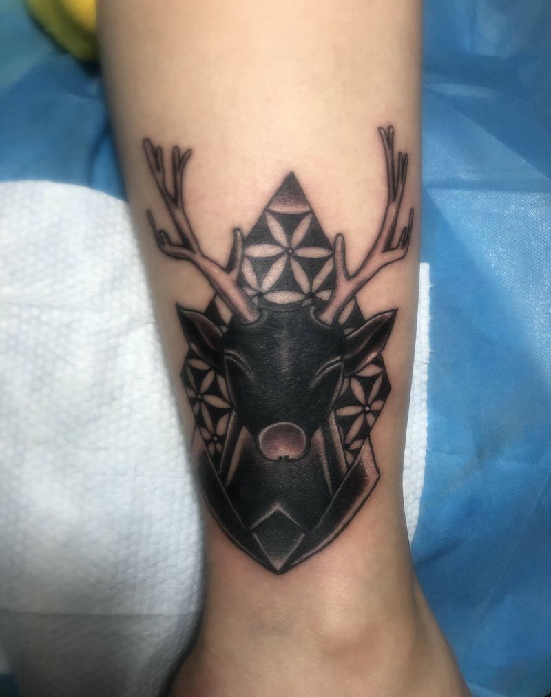 当前位置: 首页 >河北省邢台市纹身店-小黑刺青纹身专营店纹身图案>鹿头覆盖纹身图片_脚部纹身图案