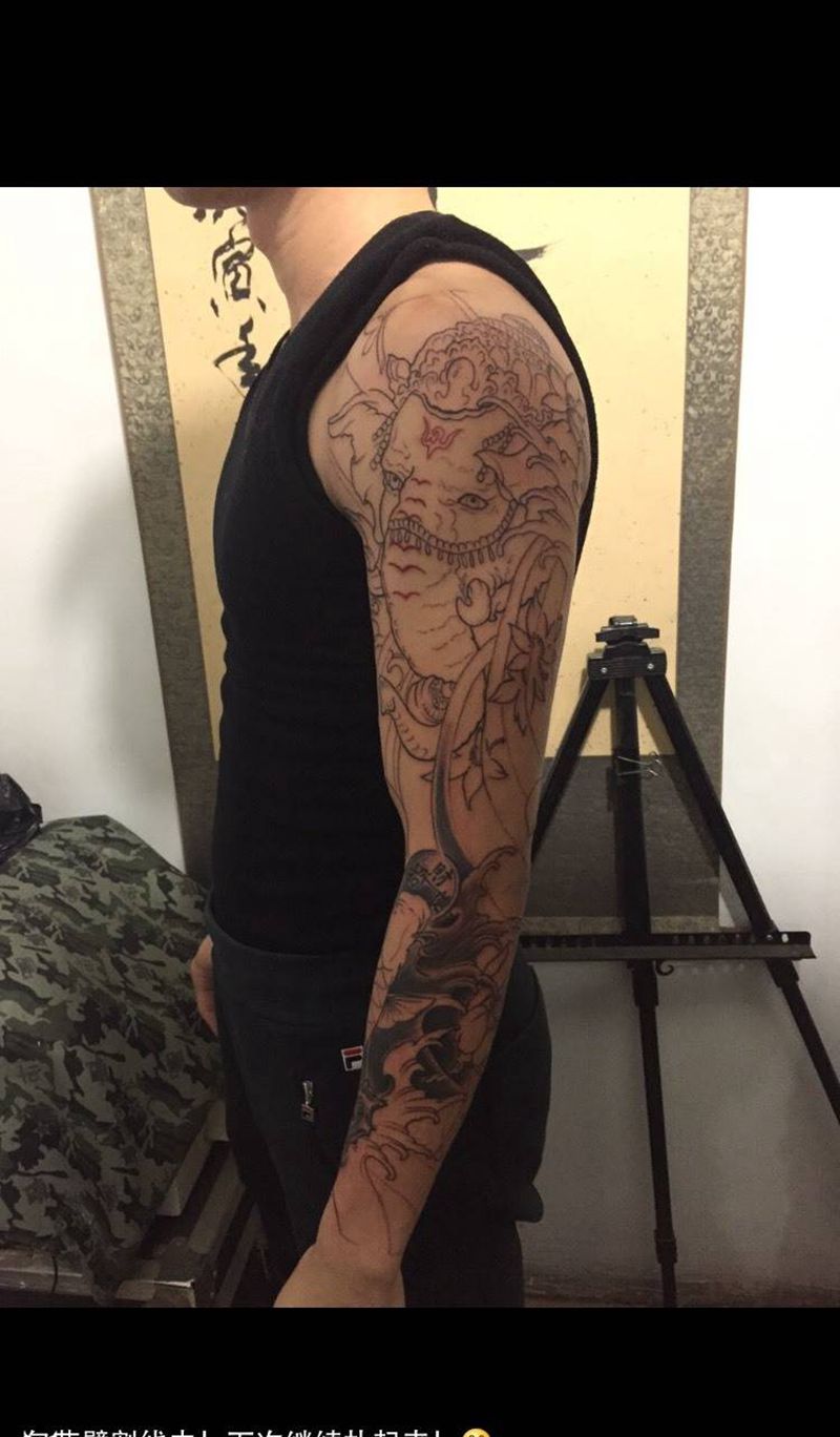 当前位置: 首页 >河北省邢台市纹身店-小黑刺青纹身专营店纹身图案>富贵平安花臂进行中!纹身图片