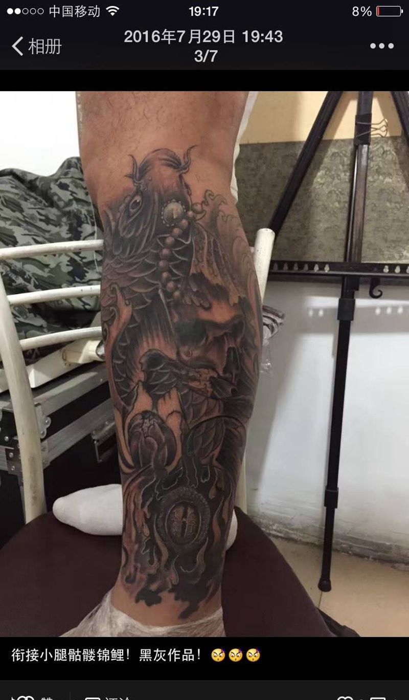 当前位置: 首页 >河北省邢台市纹身店-小黑刺青纹身专营店纹身图案>小腿鲤鱼骷髅纹身图片