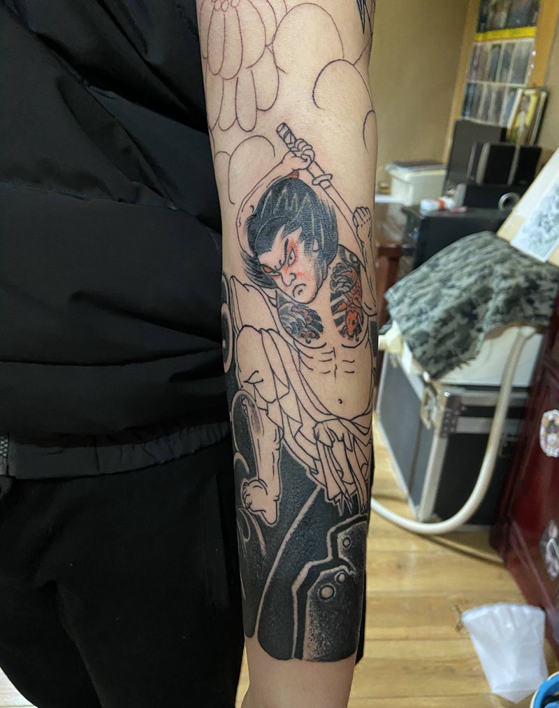 当前位置: 首页 >河北省邢台市纹身店-小黑刺青纹身专营店纹身图案>日式花臂未完成纹身图片_手臂纹身图案